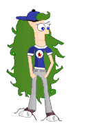 Since she is his fraternal twin Jessica looks similar to Ferb but not identical to him. She has dark blue eyes and a cubical nose, though it is not nearly as large as Ferb's. Her vivid-green hair is wavy, thick, tangled and so long it nearly reaches the floor. She also has a very large, curly cowlick in the front. Her ears are long and pointed, almost like an elf's. Due to her alien heritage, she is missing a finger on each hand, though this is normally not a problem. She is described as being a very pretty girl.
